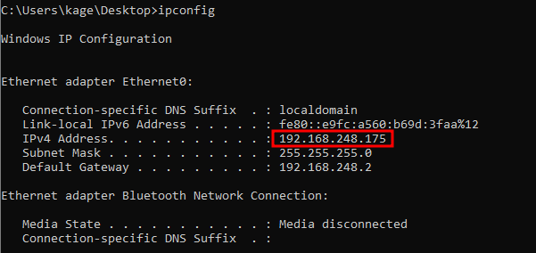 Next, make note of the IP of the host running Burp Suite. Here it's 192.168.248.175 for me.