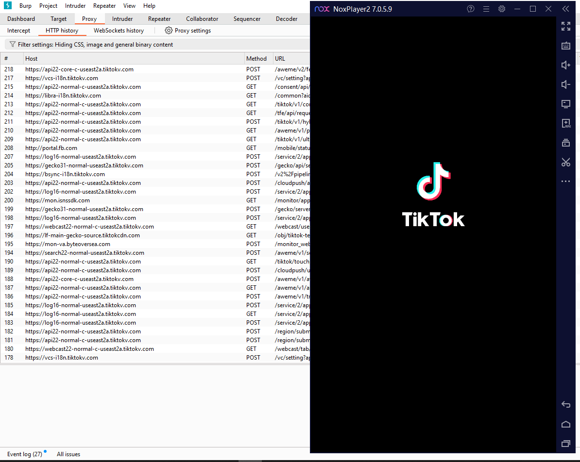 At this point, Burp should be intercepting all the network traffic on the Android device. Start an app, and you should start seeing traffic coming in.
