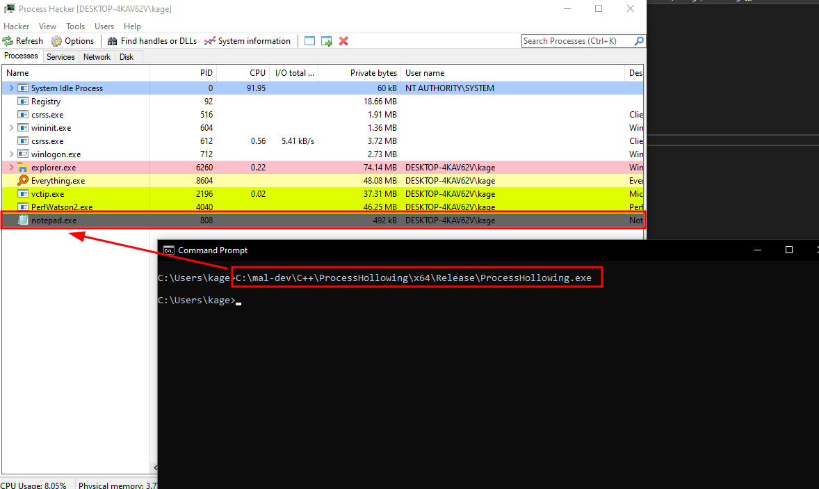 This post is to help me understand the process hollowing technique and writing C++ code for it using direct syscalls.