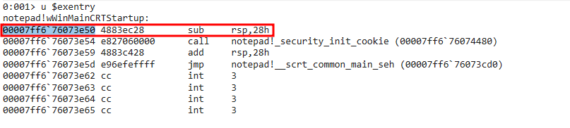 Thus, we have found our entry point address at 00007ff676073e50, with a relative address of 23E50 from the base image. Now, let's see if we can mathematically calculate this address in code.