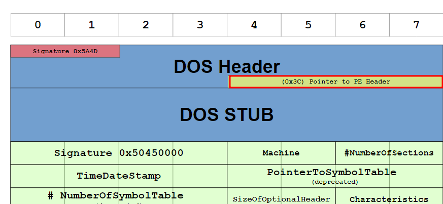 From here, we know that the pointer to the PE header is located at an offset of 0x3C from the image base.