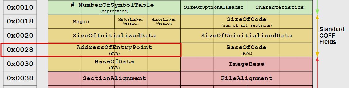 // Add 0x28 to get to the offset of the entrypoint RVA.